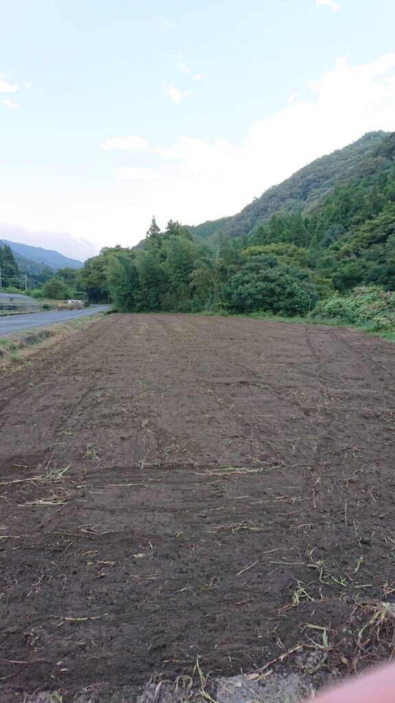 にんにく 土壌作り 2021-10-19 ニンニク畑の土づくりをしていきます。 まずは人の手で石灰をまいていきます。 その後、トラクターで均等にならしていきます。 トラクターでならした後 次回は、畝立てとマルチを張る作業をします!