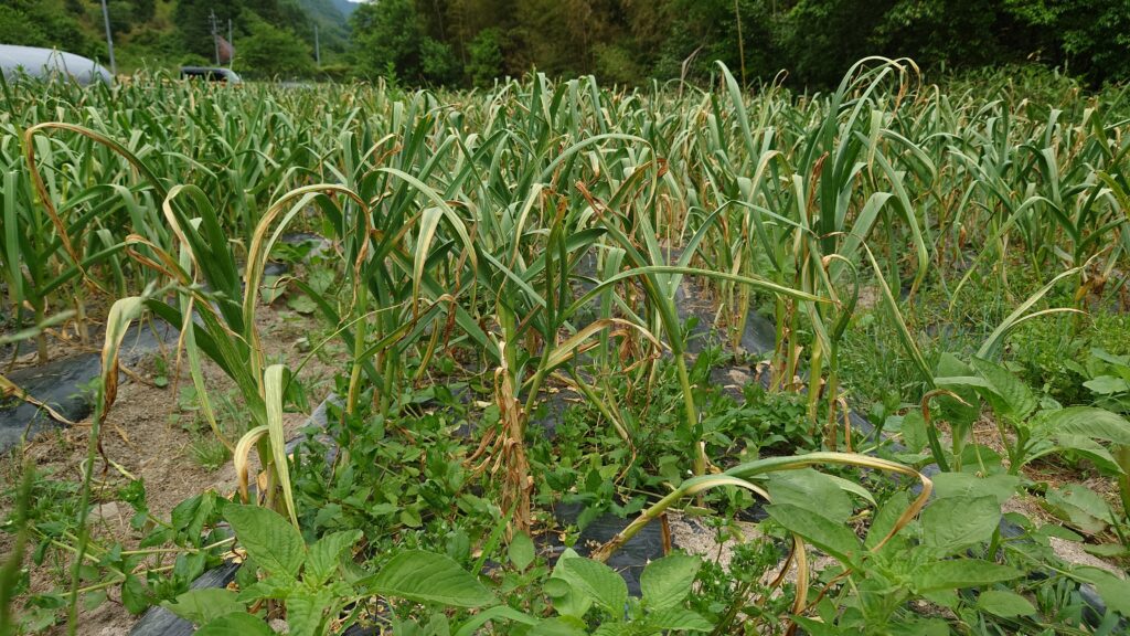 にんにく 成長記録 2022-05-21 順調に成長してくれました。 収穫間近な状態です。 天候を見ながら収穫を待ちます。 最後の成長記録となりました。 次回更新は、いよいよ収穫です。 にんにくの初収穫をお楽しみに。
