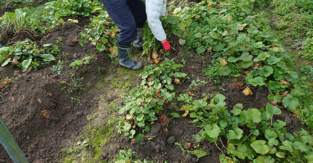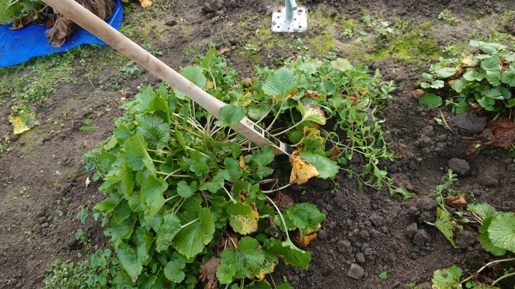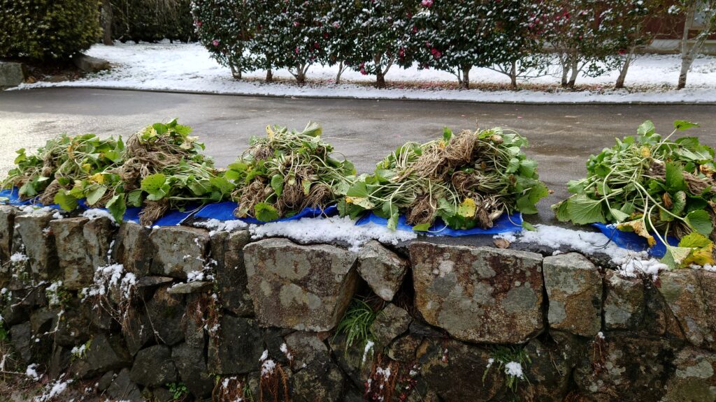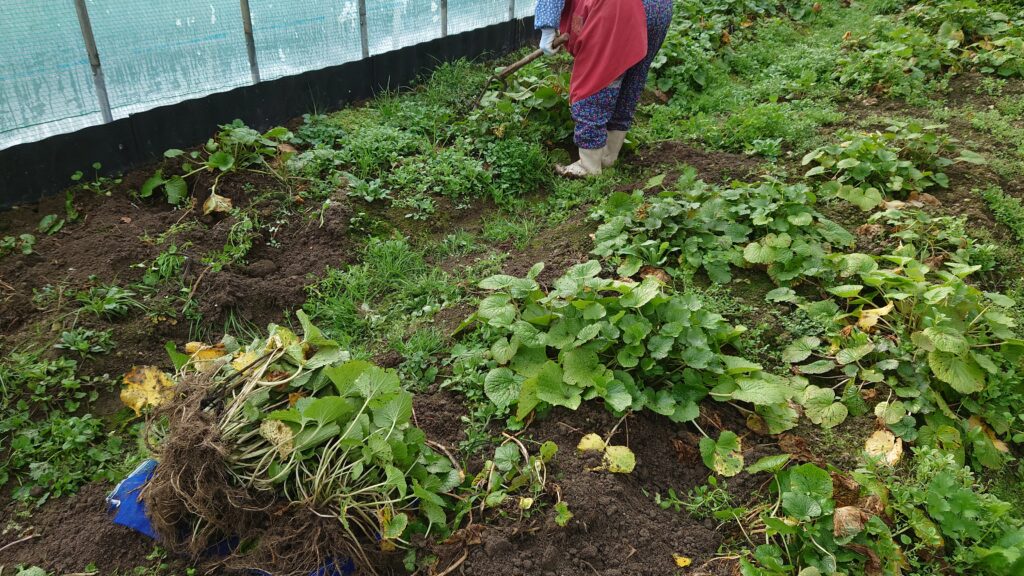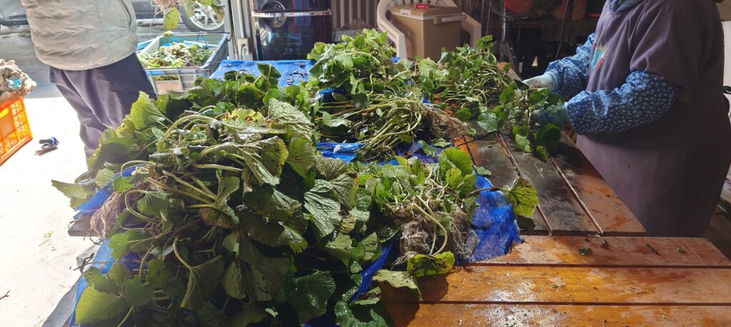 わさび漬けを製造するために原料となるわさびの収穫を開始いたしました。
