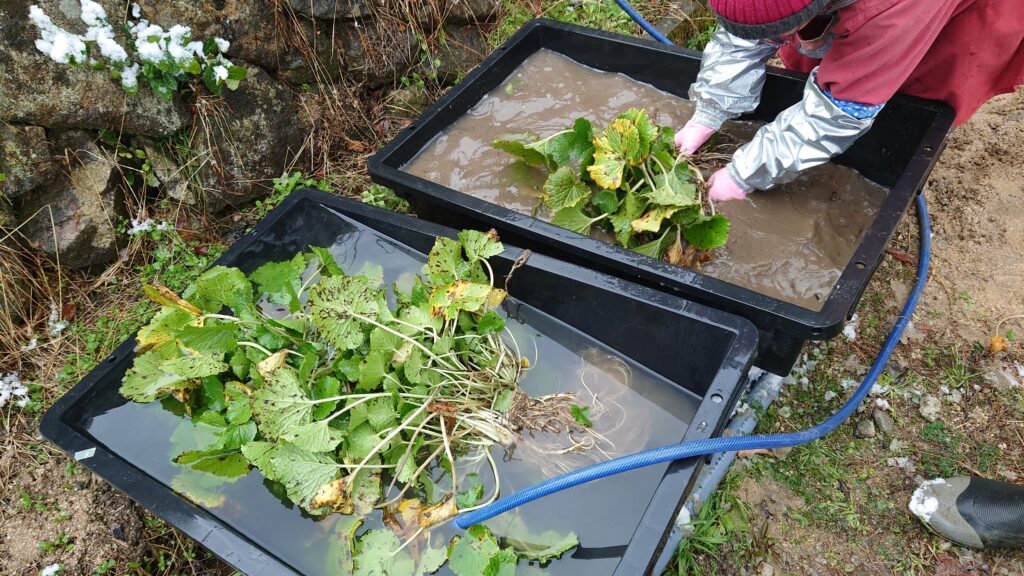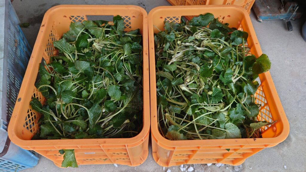 準備したわさびを加工場に持って行き、わさび漬けを作っていきます。