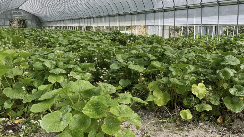 2023年12月に植え付けをしたわさびも、冬を越したことで、葉を展開して株も成長し始めました。