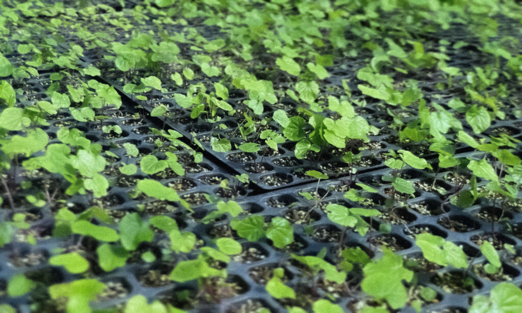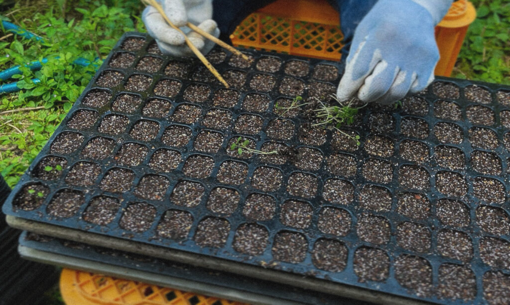 今年の春に収穫した種を発芽させ、一本一本丁寧にトレーへと移植しました。